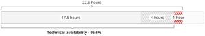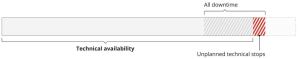 I “teknisk tilgængelighed” (eller “technical availability”) medregner vi kun de tekniske stop. På den måde kan vi se, hvor stor en del af den planlagte produktion, hvor vi oplever “tekniske stop”.