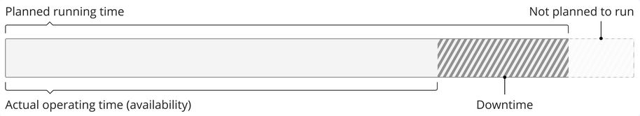 I “tilgængelighed” (eller “availability”) har vi alle stop i den planlagte produktionstid (åbningstid):