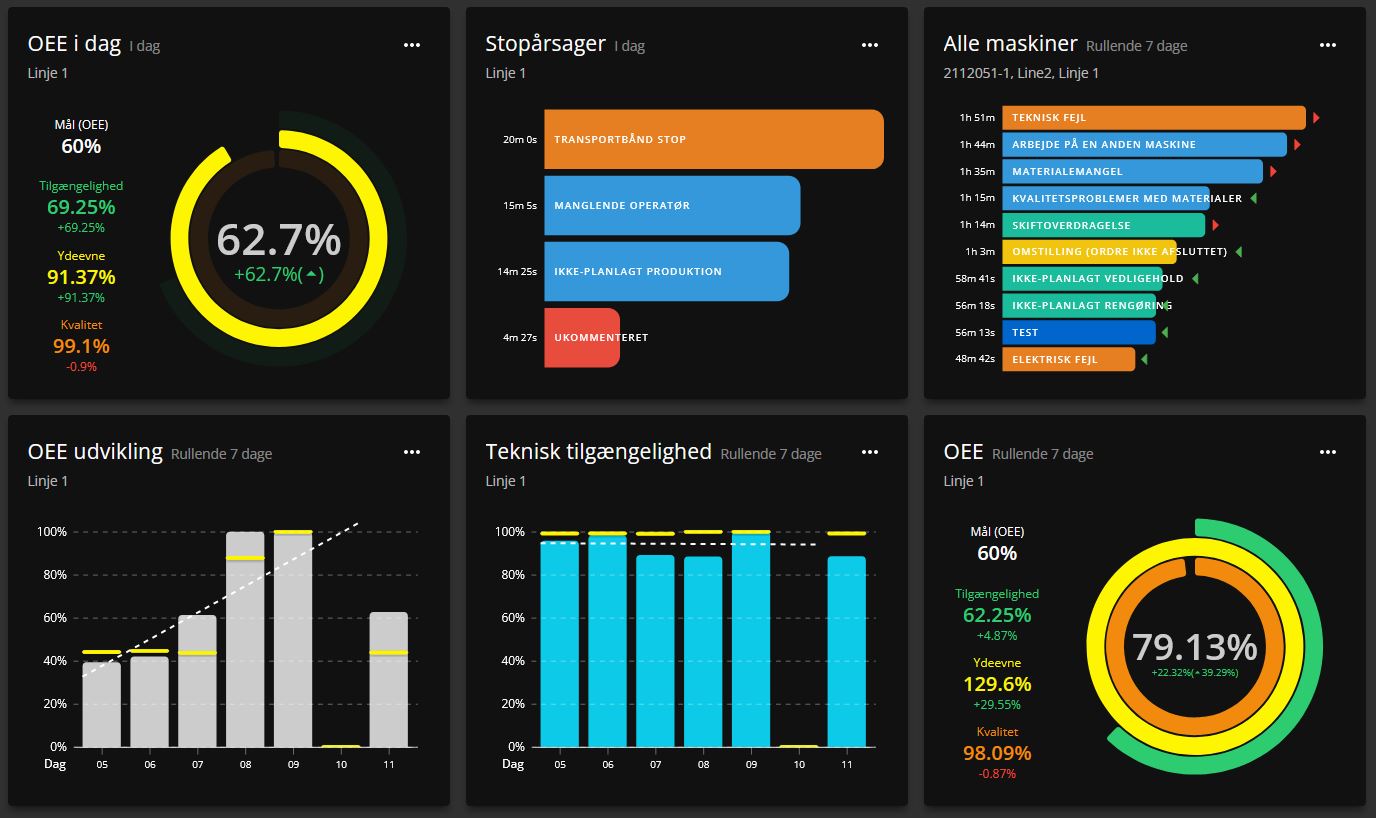 Ved at have et OEE-system, hvor tekniske tilgængelighed kan beregnes, så kan man få vist værdien.